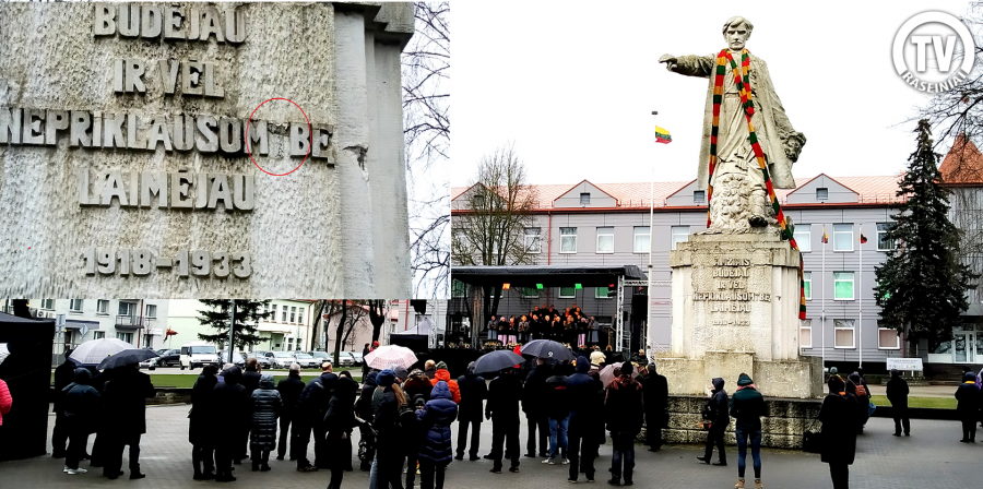 Jei švęsti Lietuvą, tai visa širdimi kvietė Raseinių rajono savivaldybės meras Andriaus Bautronis ir daug kitokių labai gražių sveikinimo žodžių sulaukė Lietuva, tik mūsų miesto paminklas Laisvės simbolis nors ir buvo papuoštas trispalvės šaliku pasidžiaugti tuo negali.