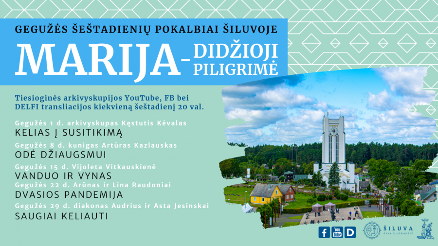2020 m. pandemija nesustabdė troškimo gegužės mėnesį skirti Švč. Mergelei Marijai, todėl visus penkis šeštadienius buvo diskutuojama opiais Jėzaus Motinos ir mūsų gyvenimo klausimais. 2021 m. tampa ne išimtimi, o veikiau prielaida kurti tradiciją pratęsiant šeštadienio pokalbius Šiluvoje. Šį kartą, pasauliui einant savotišką prasmės paieškų piligrimystę, siūlome atsigręžti į Mergelę Mariją kaip mylinčią Mamą, Juozapo Sutuoktinę, kaip didžiąją gyvenimo piligrimę. Raginame gyvosios piligrimystės patirtį rašyti ne tik nueitais kilometrais, bet ir prisiliesti mintimis bei apmąstymais penkis gegužės šeštadienius gilinantis į Marijos gyvenimo piligrimystę.