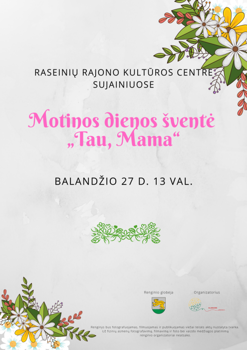 Kviečiame į Motinos dienos šventė „Tau, Mama“ 2019-04-232019-04-16Mindaugas Balandžio 27 d. 13.00 val. Motinos dienos šventė „Tau, Mama“ RRKC Sujainiuose (Mokyklos g. 4)